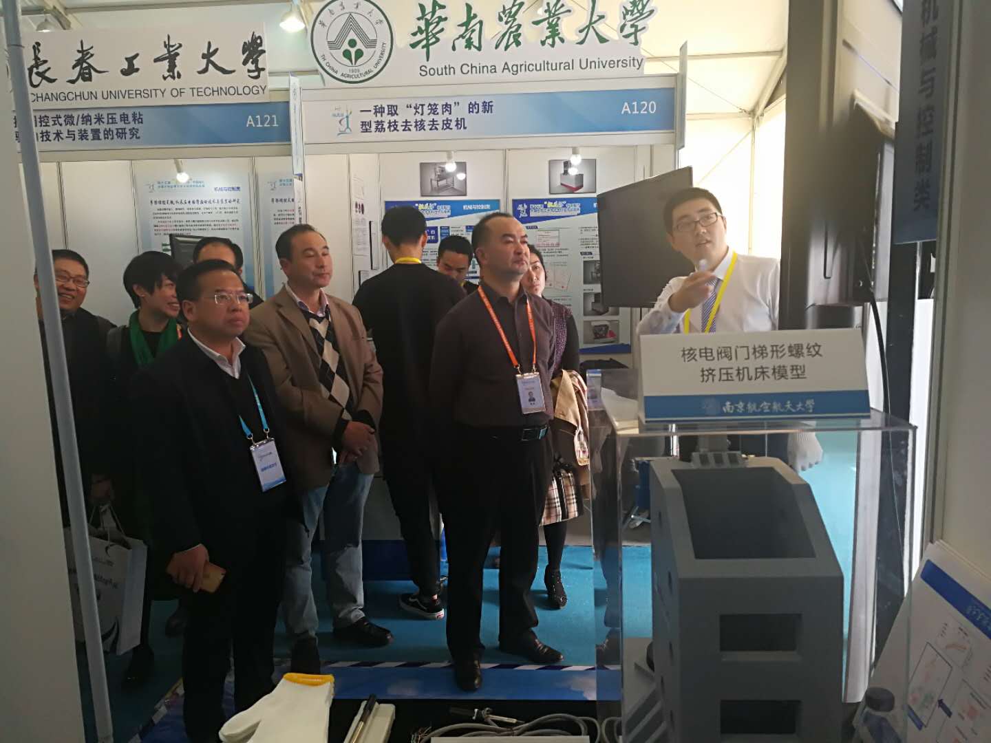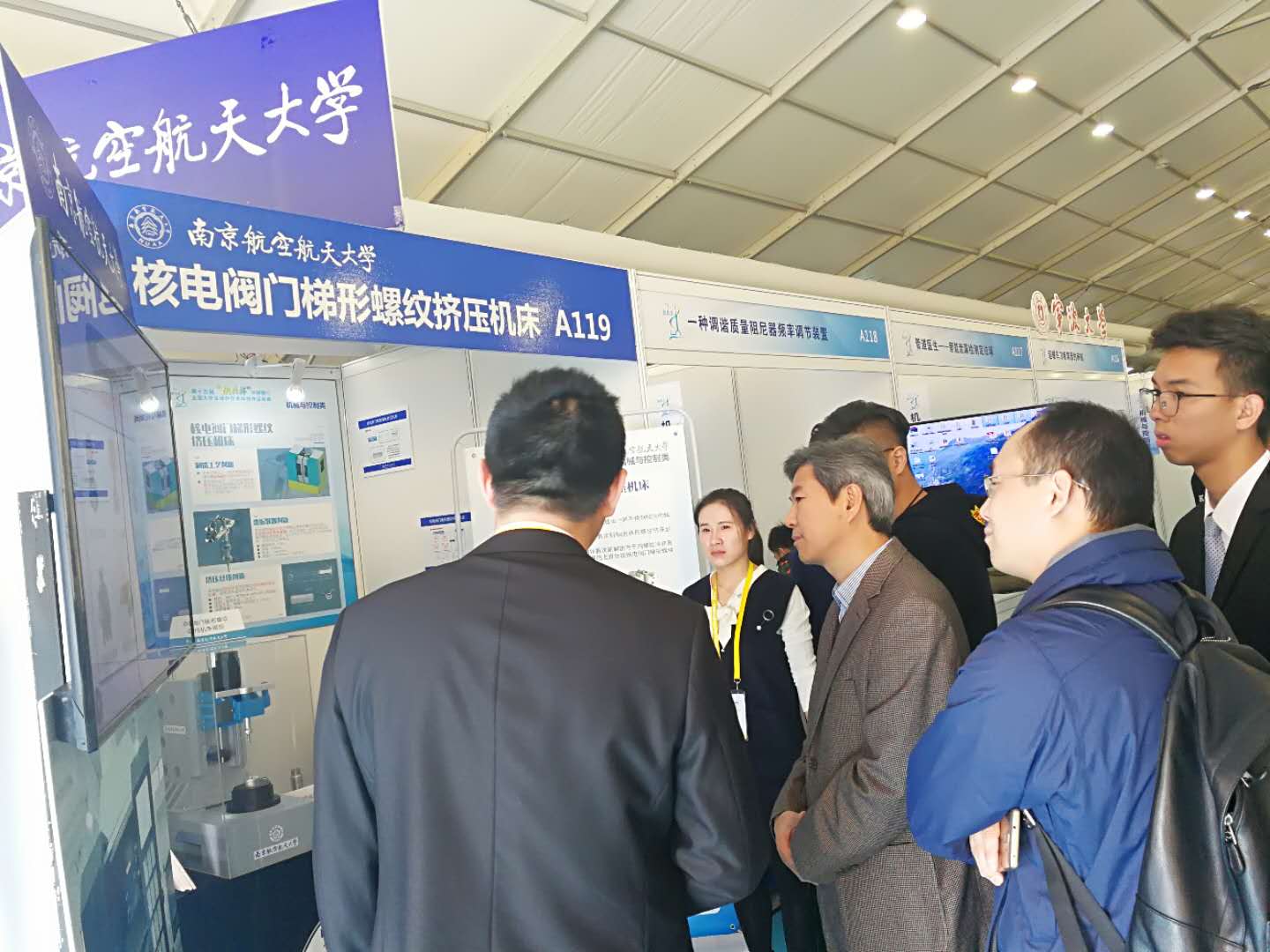 11月14日至19日,第十五届“挑战杯”全国大学生课外学术科技作品竞赛决赛在上海大学举行。经过省赛等前期激烈角逐,我院左敦稳、孙玉利教授指导的,由廖泽南、李岚、汤苏扬、徐洋、崔晓飞、罗伦等组成的“核电阀门梯形螺纹挤压机床”项目荣获机械控制组一等奖。11月15日,校党委副书记陶勇、研究生院常务副院长江驹、教务处处长王成华、学生处处长侍旭、院党委副书记徐俊珠、指导教师左敦稳教授到场指导我院决赛项目布展并为团队成员加油鼓劲。团省委副书记司勇也来到现场观看我院项目展示并指导。