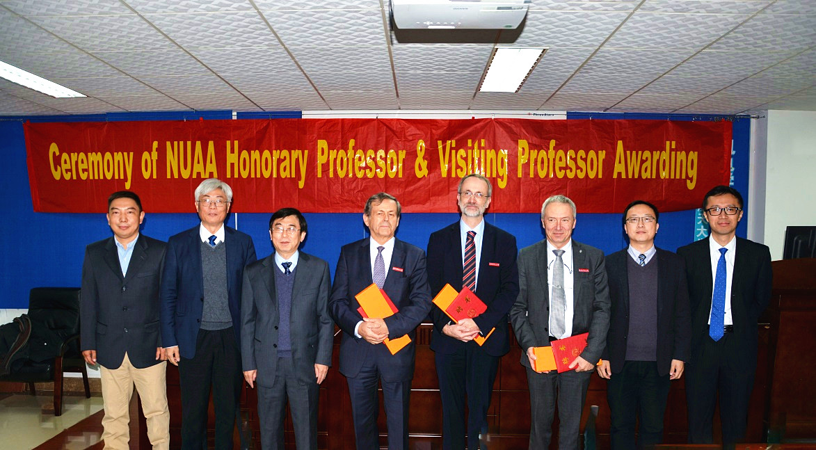 11月21日上午,在我院111引智基地的支持下,比利时鲁汶大学机械工程系Hendrik Van Brussel院士、Bert Lauwers教授、Dominiek Reynaerts教授、钱军博士一行应邀来访我院。Hendrik Van Brussel院士受聘为我校名誉教授,Bert Lauwers、Dominiek Reynaerts两位教授受聘为我校客座教授,施大宁副校长参加了受聘仪式,为三位教授颁发了跳蛋自慰 荣誉教授、客座教授证书,并和跳蛋自慰 傅玉灿院长、国际合作处赖际舟副处长一起为三位教授佩戴了校徽。国际合作处陈峰副处长、跳蛋自慰 徐正扬副院长、何宁教授等出席了受聘仪式,仪式由陈峰副处长主持。