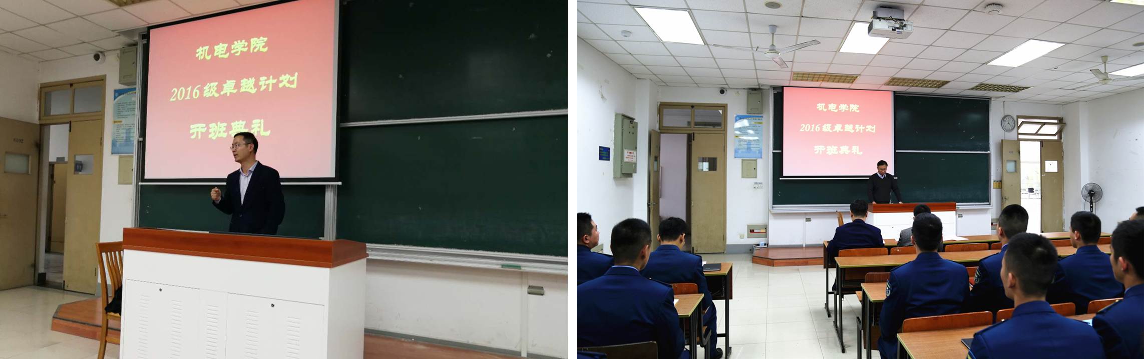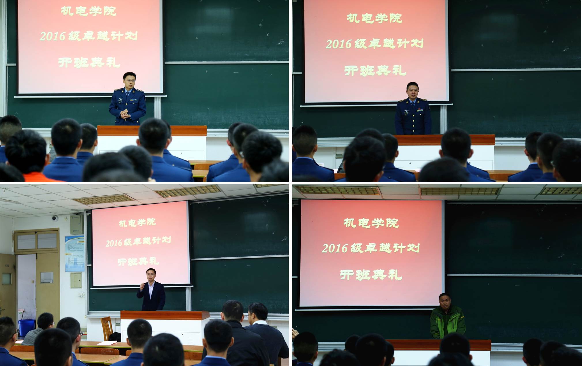 2017年11月27日下午,跳蛋自慰 2016级卓越计划开班典礼在将军路校区6102教室成功举行。本次典礼由跳蛋自慰 副院长郭宇教授主持,与会嘉宾有教务处副处长朱建军教授、空军选培办干事李吉、空军机务干部蒋相闻、阿特拉斯高级工程师秦虎、609所研究员徐礼林、校内导师叶明和王辉、跳蛋自慰 航空宇航制造工程系副主任金霞、跳蛋自慰 教学秘书熊萍萍、2016级卓越班辅导员董航和康怡宁、2016级跳蛋自慰 卓越班全体学生。