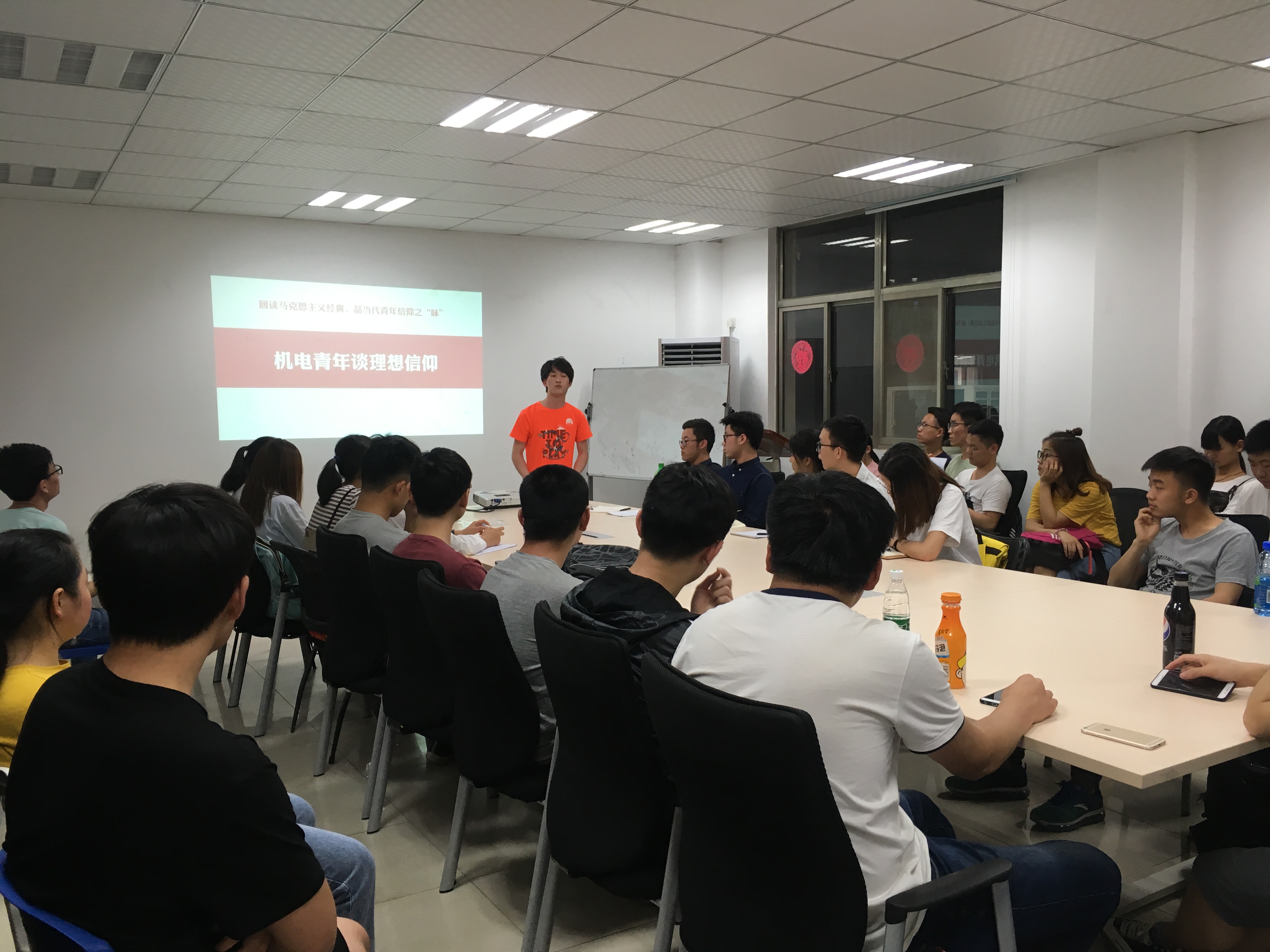 线下主题教育活动依托“机电青年信仰课堂”系列主题教育活动,以“回读马克思主义经典,品当代青年信仰之味”为主题,面向2016级、2017级团学干部进行理论学习和分享交流。本次主题分享交流会于2018年5月4日晚八点半在将军路校区学工楼210会议室举行,跳蛋自慰 2016级辅导员康怡宁、2017级辅导员刘洪达以及两个年级的学生团干部参与了本次活动。