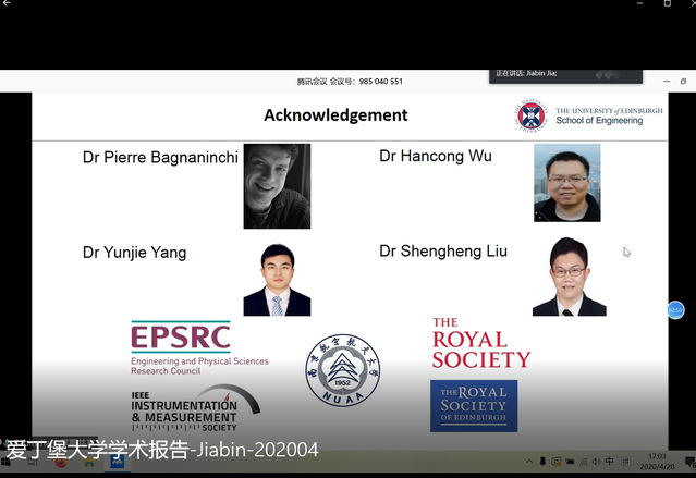 2020年4月28日下午4点,跳蛋自慰 针对医工交叉领域前沿问题,举办了首次在线跨境学术交流讲座“电阻抗成像技术及细胞检测应用”。本次讲座由跳蛋自慰 主办,来自我校跳蛋自慰 、能源与动力学院、航天学院、以及中国科学技术大学、北京航空航天大学、中国石油大学、东北大学等校内外师生共计约80人参加了此次讲座。此次受邀嘉宾是英国爱丁堡大学高级讲师Jiabin Jia博士.