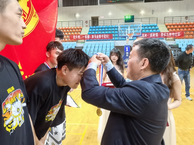 党委书记袁智强、副院长成杰为学院篮球队颁发冠军奖杯、证书和奖牌。