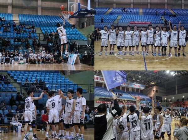 球员命中关键三分,打出完美配合,接连得分,最终以54:46比分,赢得了“新生杯”篮球赛的总冠军。