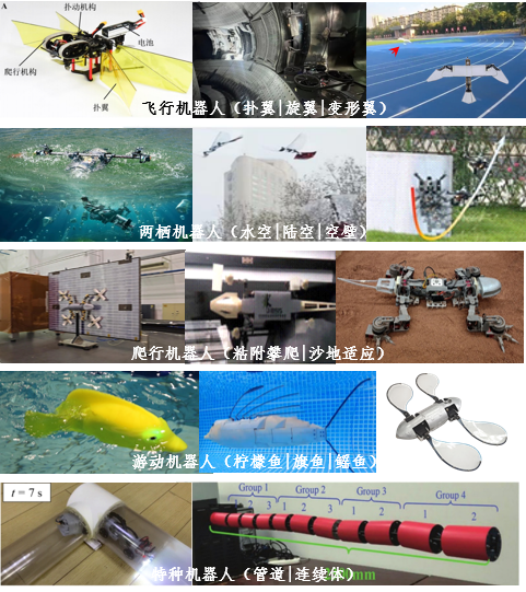 仿生机器人、智能驱动材料、仿生触觉感知、柔性传感与可穿戴技术等。
