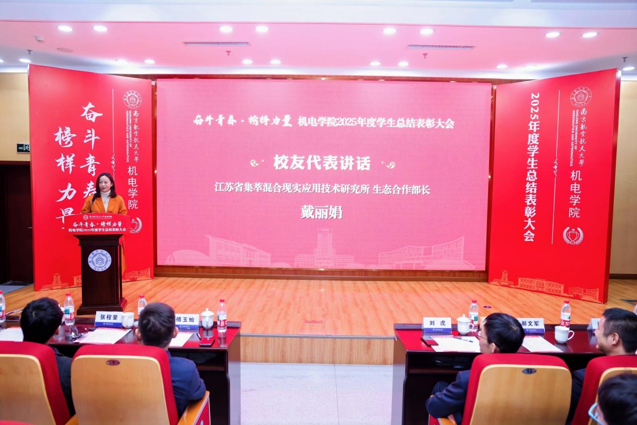 戴丽娟分享了设立院友奖学金的初心,就是希望同学们把握航空工业与科创事业蓬勃发展的历史机遇,未来在国家科技创新的大舞台上施展才华,看到学弟学妹们出色的科研与学习风采,她深感自豪与振奋。